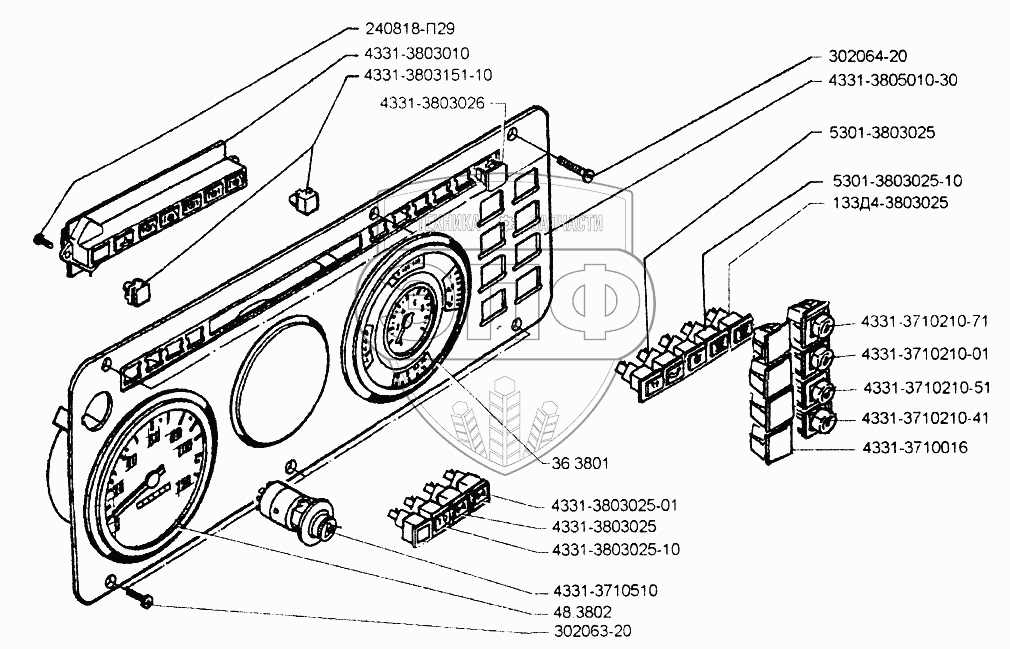 Каталог запасных частей к технике: ЗИЛ-433110. Щиток приборов