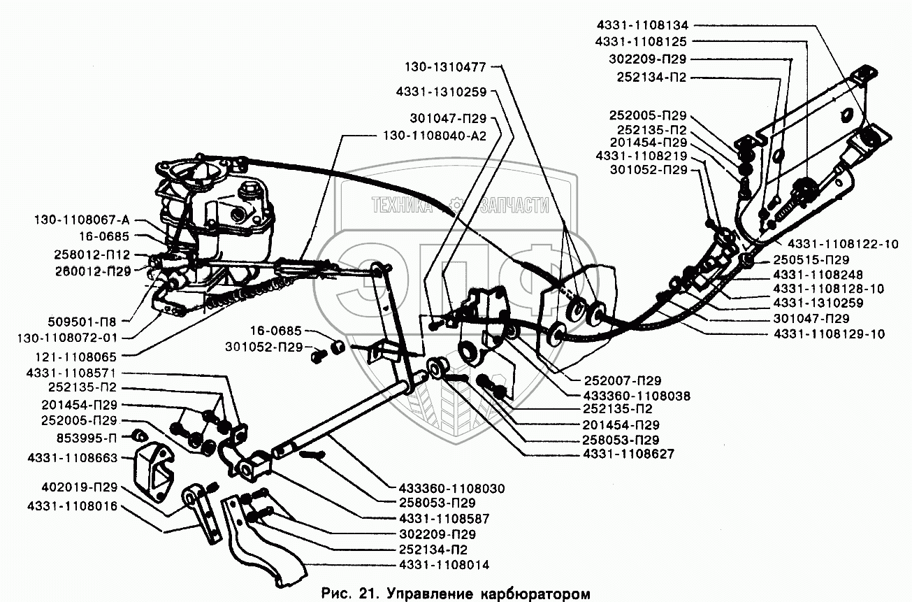 Каталог запасных частей к технике: ЗИЛ-433110. Управление карбюратором