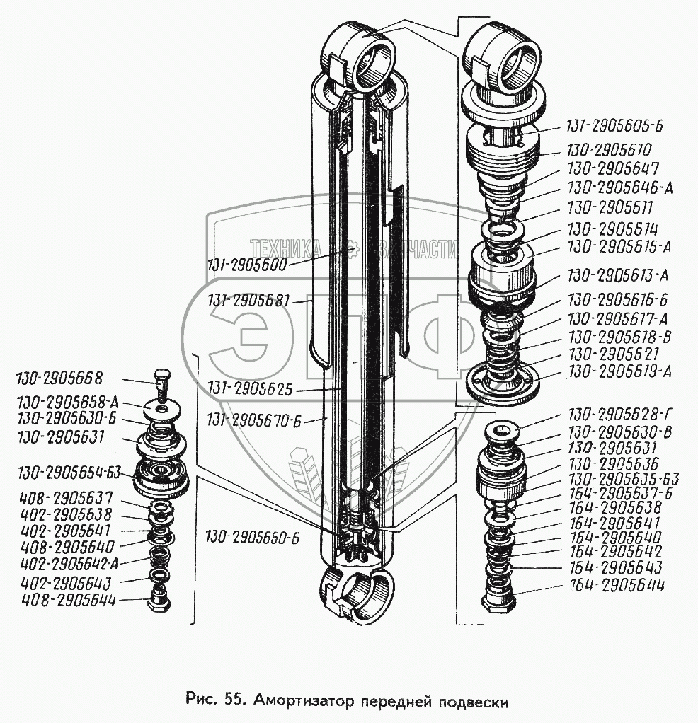 Каталог запасных частей к технике: ЗИЛ-442160. Амортизатор передней подвеска