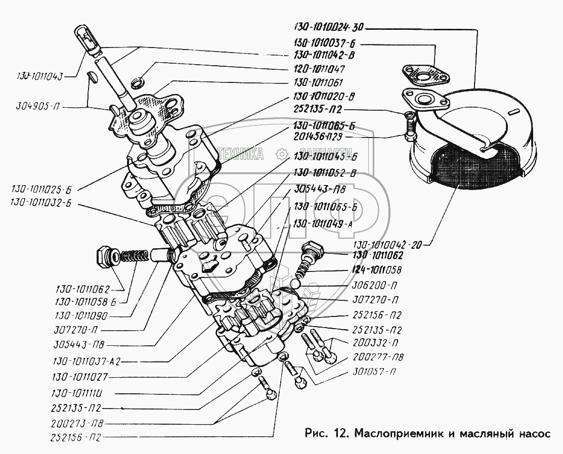 Каталог запасных частей к технике: ЗИЛ-442160. Маслоприемник и масляный насос