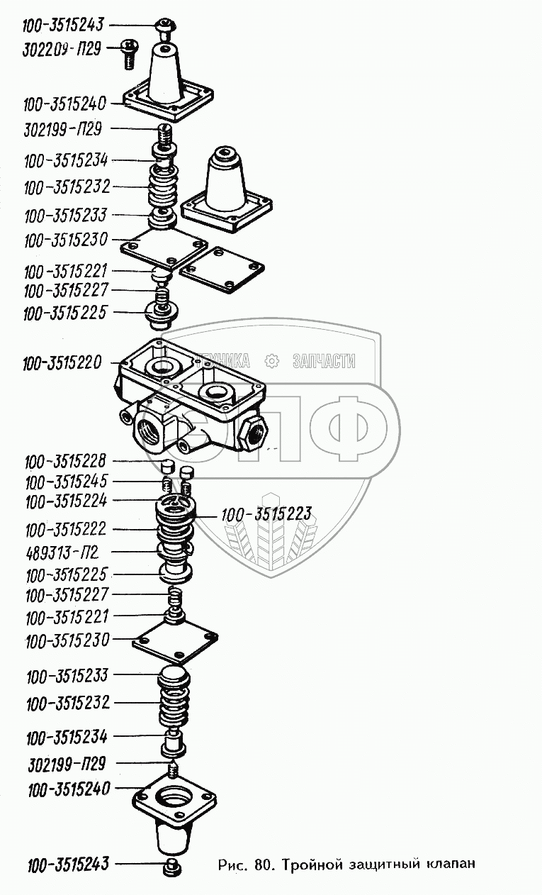 Каталог запасных частей к технике: ЗИЛ-442160. Тройной защитный клапан