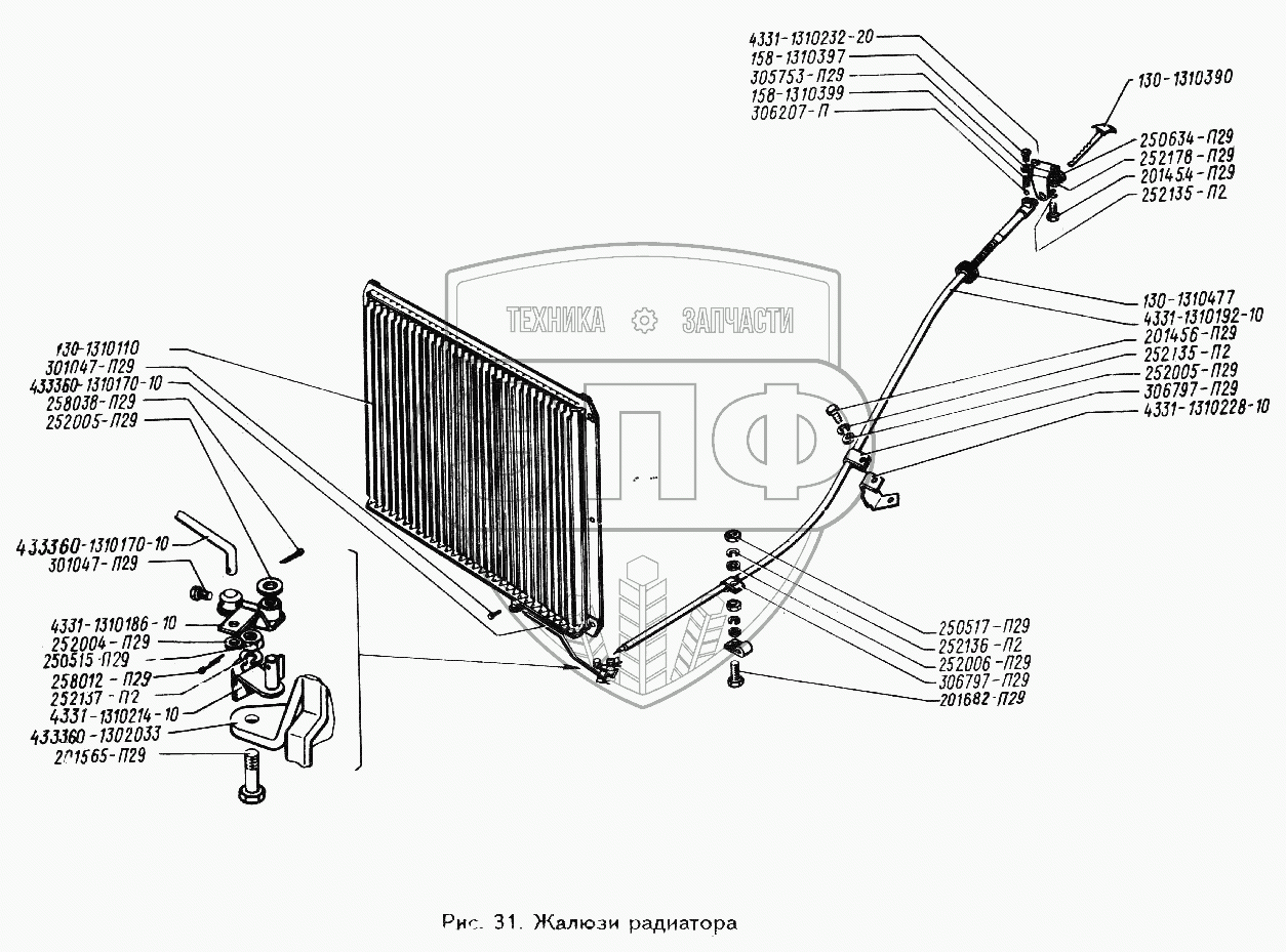 Каталог запасных частей к технике: ЗИЛ-442160. Жалюзи радиатора