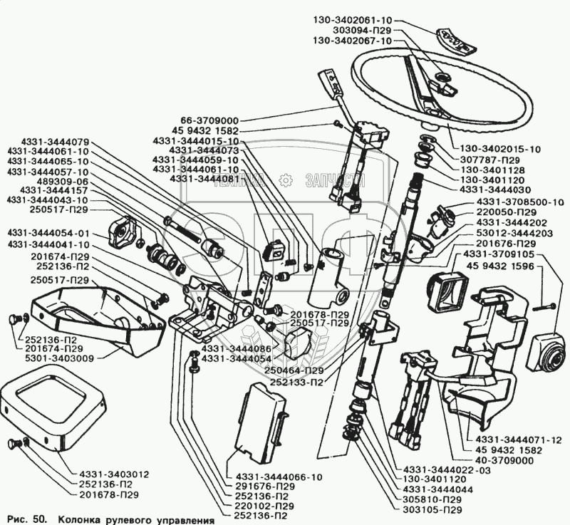 Каталог запасных частей к технике: ЗИЛ-5301. Колонка рулевого управления