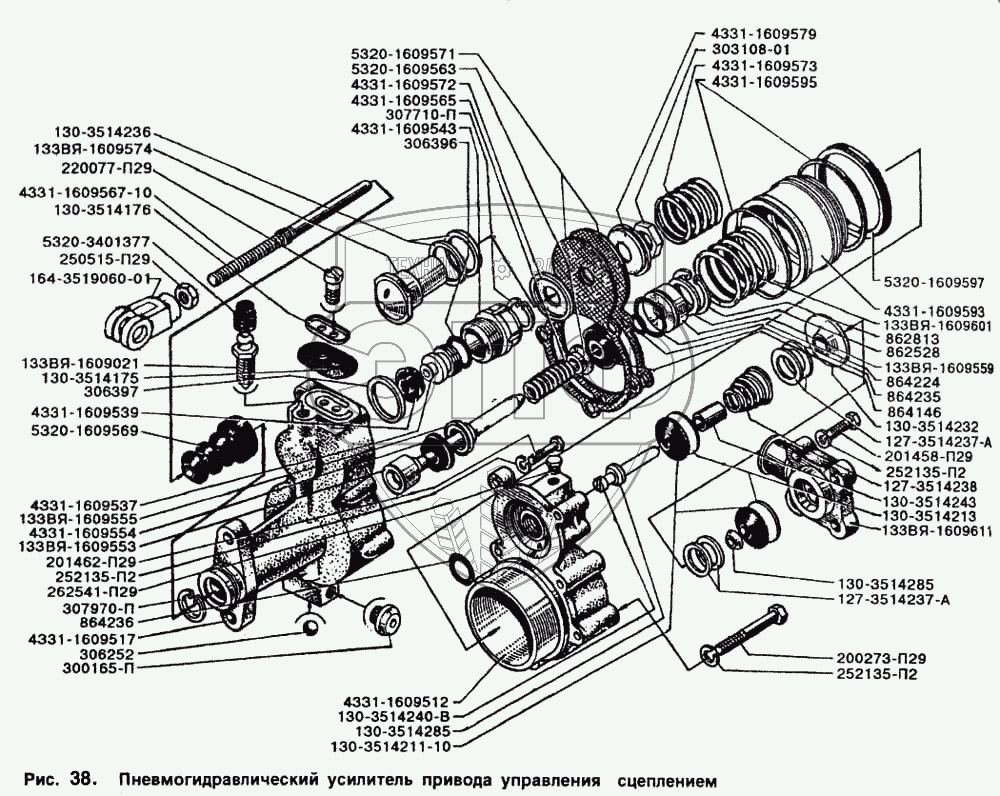 Каталог запасных частей к технике: ЗИЛ-5301. Пневмогидравлический усилитель привода управления сцеплением