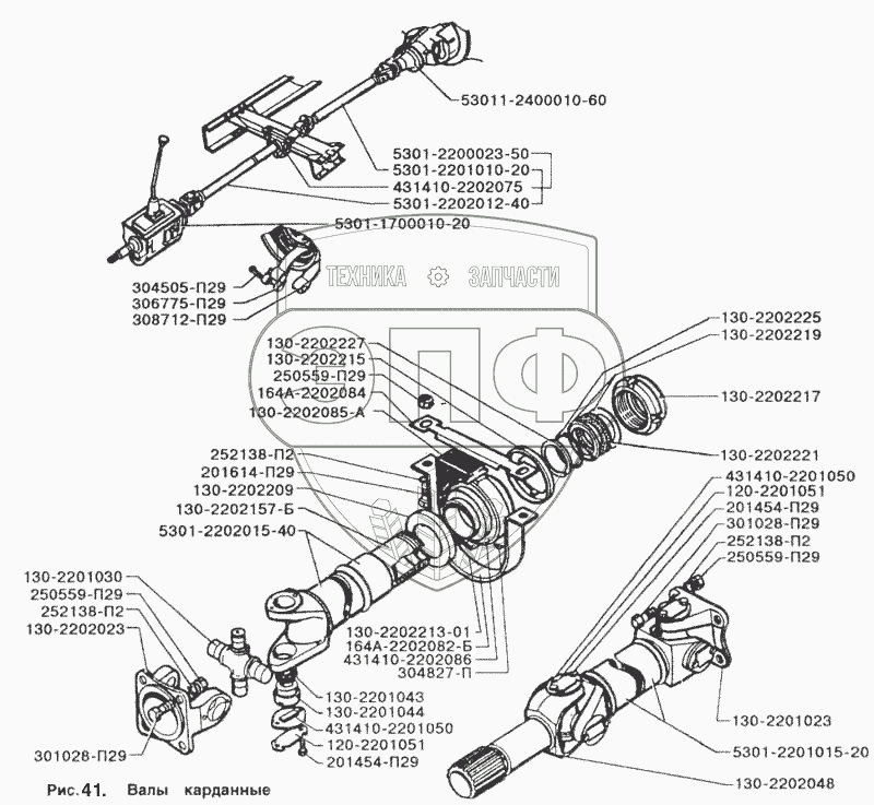 Каталог запасных частей к технике: ЗИЛ-5301. Валы карданные