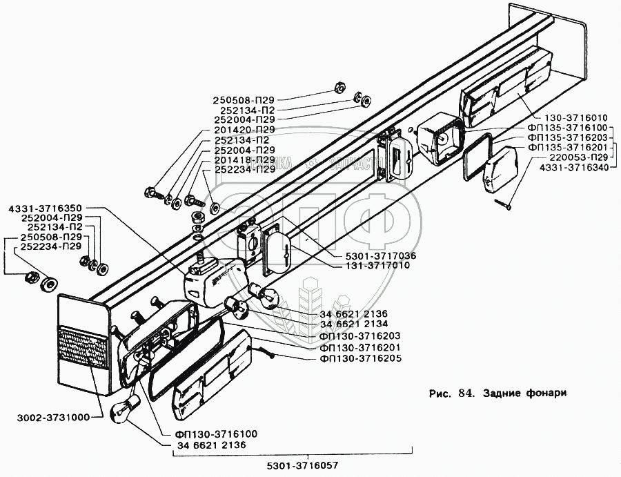 Каталог запасных частей к технике: ЗИЛ-5301. Задние фонари