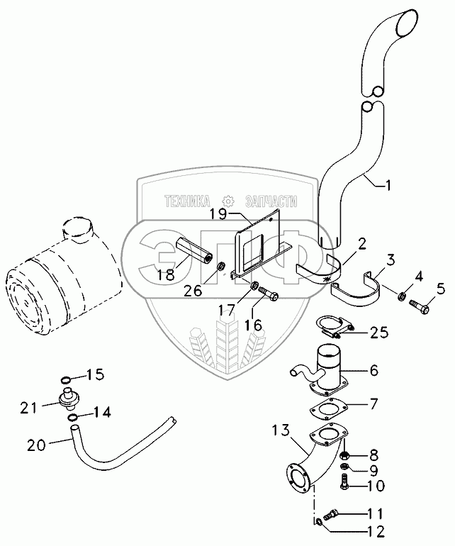 Каталог запасных частей к технике: AGCO Allis AA6.190. Exhaust, with Platform