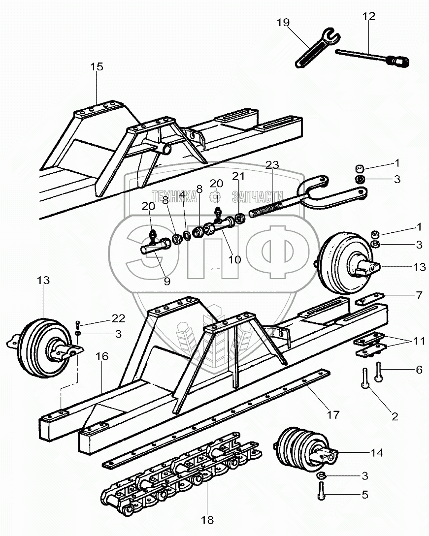 Каталог запасных частей к технике: AGCO Fendt-5220 часть1. Chassis Crawler Tracks - 7 Rollers