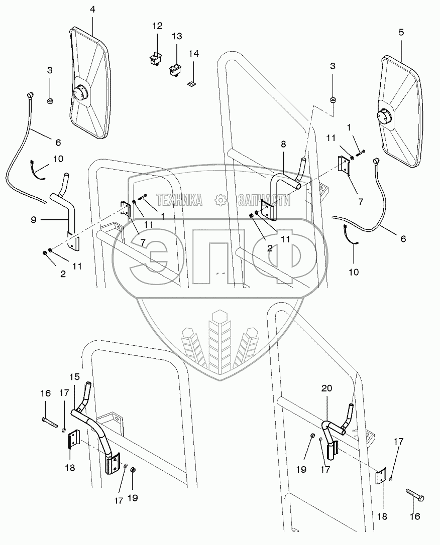 Каталог запасных частей к технике: AGCO Fendt-5220 часть2. Cab Rear View Mirrors