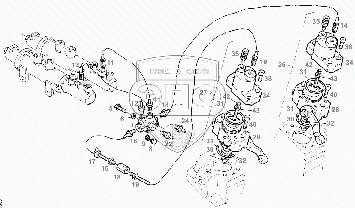 Каталог запасных частей к технике: AGCO Fendt-524 (Xylon) часть1. ACTUATING CYLINDER