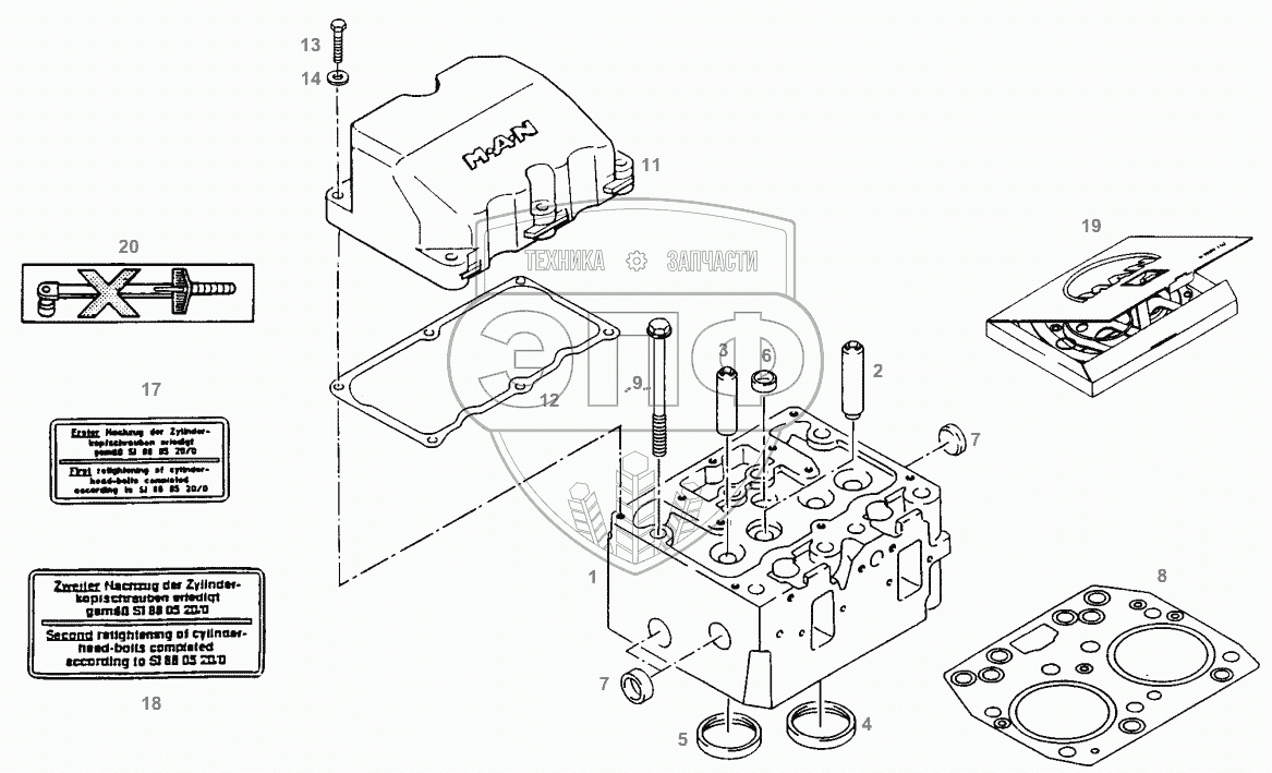 Каталог запасных частей к технике: AGCO Fendt-524 (Xylon) часть1. CYLINDER HEAD