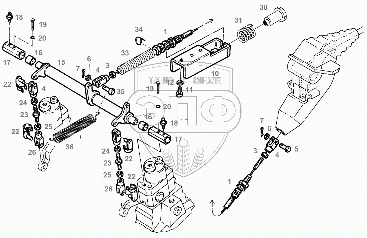 Каталог запасных частей к технике: AGCO Fendt-524 (Xylon) часть1. HAND BRAKE ACTUATING