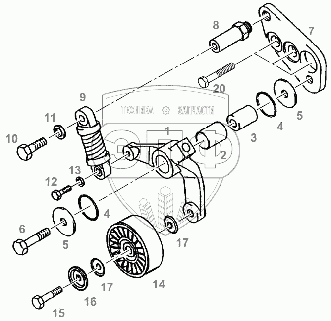 Каталог запасных частей к технике: AGCO Fendt-524 (Xylon) часть1. TENSION ROLLER