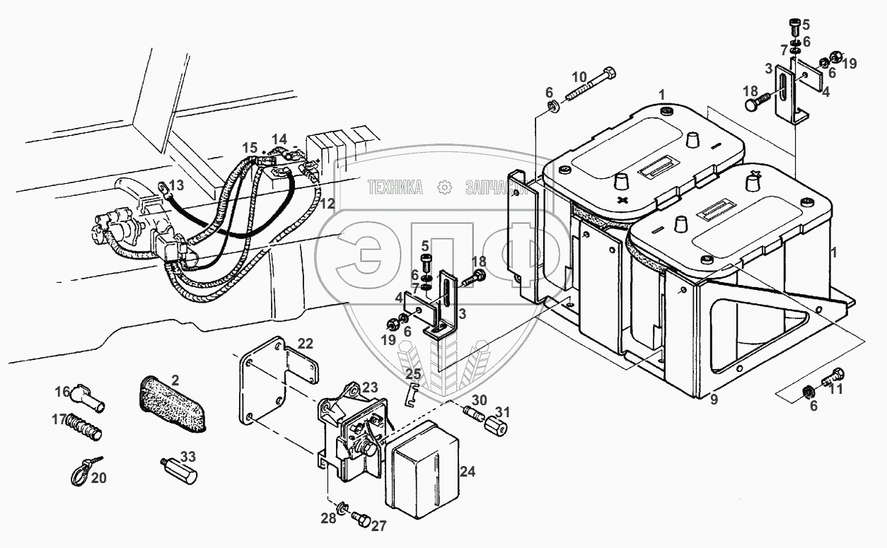 Каталог запасных частей к технике: AGCO Fendt-524 (Xylon) часть3. BATTERY INSTALLATION