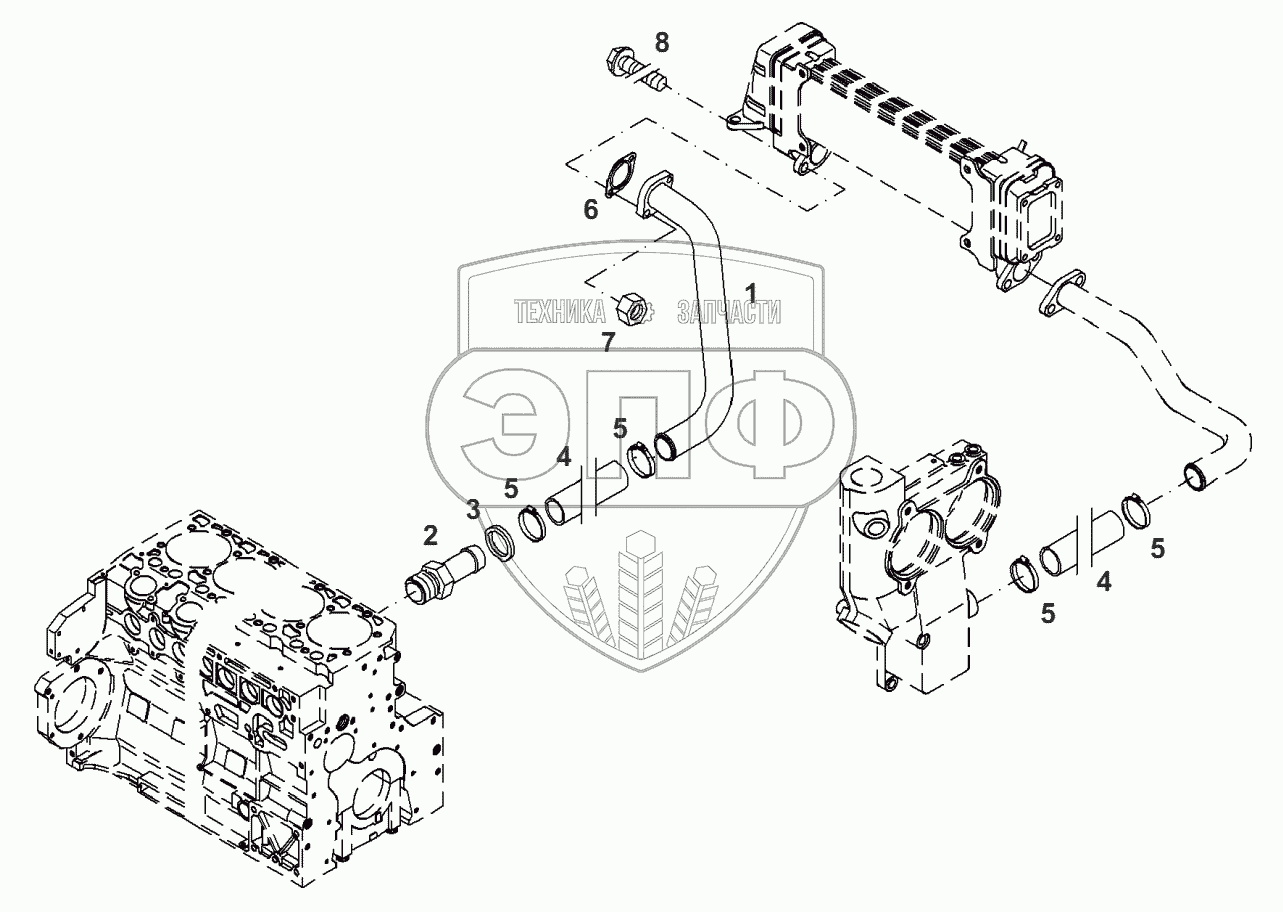 Каталог запасных частей к технике: AGCO Fendt-936 часть1. Двигатель-водяной патрубок