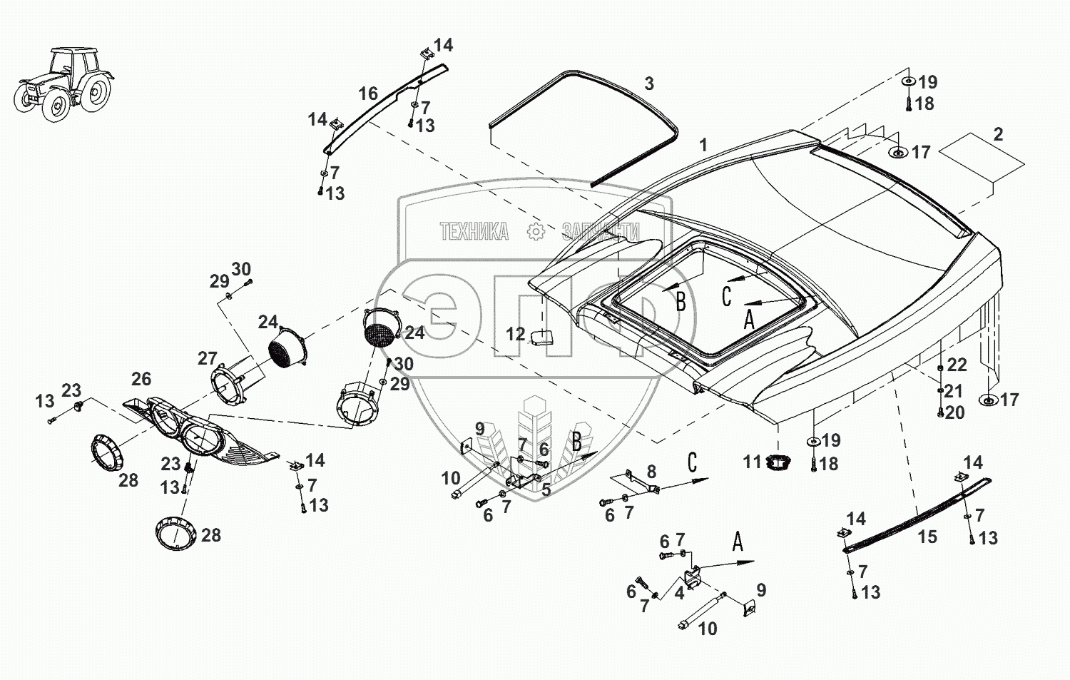 Каталог запасных частей к технике: AGCO Fendt-936 часть1. Кабина-крыша