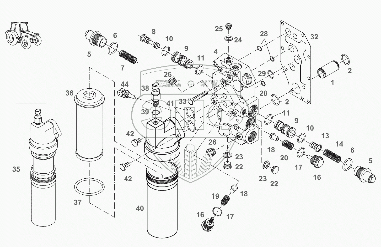Каталог запасных частей к технике: AGCO Fendt-936 часть1. Коробка передач-блок клапанов