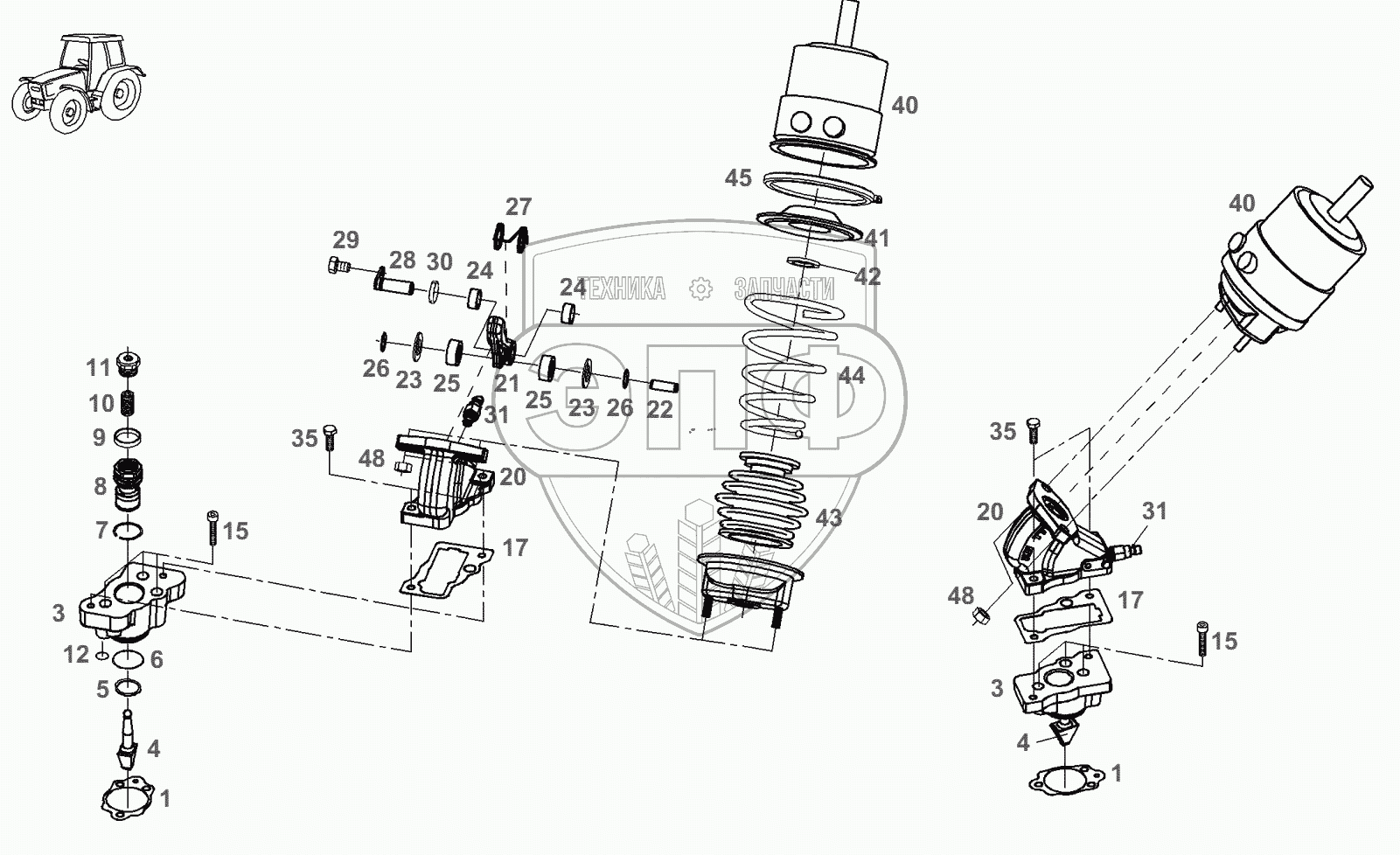 Каталог запасных частей к технике: AGCO Fendt-936 часть1. Коробка передач-цилиндр рабочий