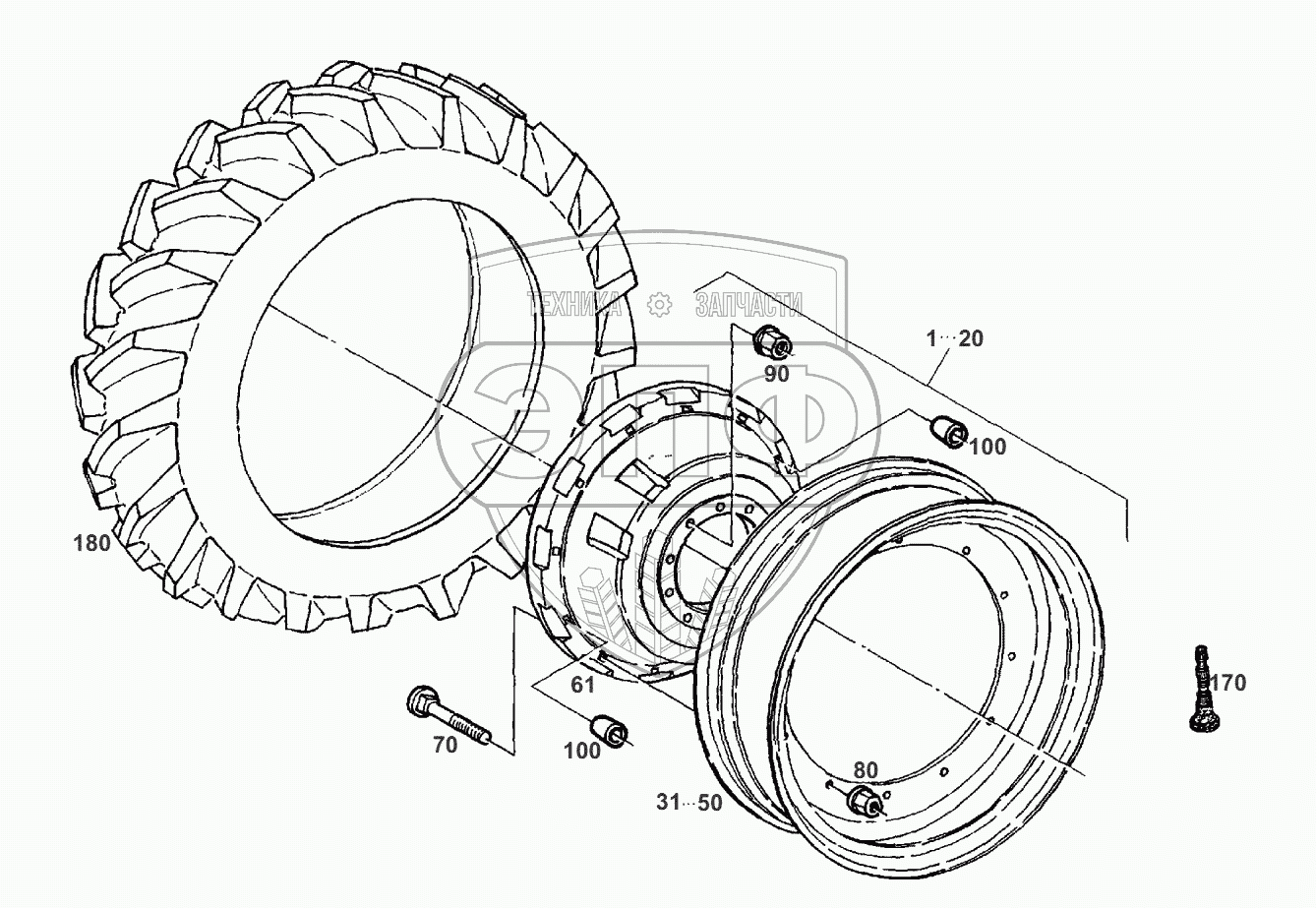 Каталог запасных частей к технике: AGCO Fendt-936 часть2. Колеса-задн.перест. колеса