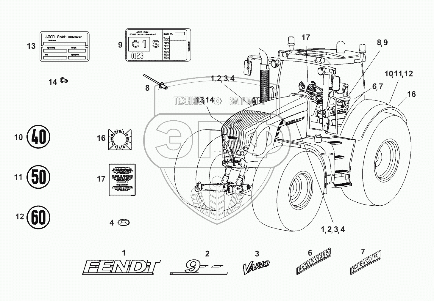 Каталог запасных частей к технике: AGCO Fendt-936 часть2. Кузов-указатели