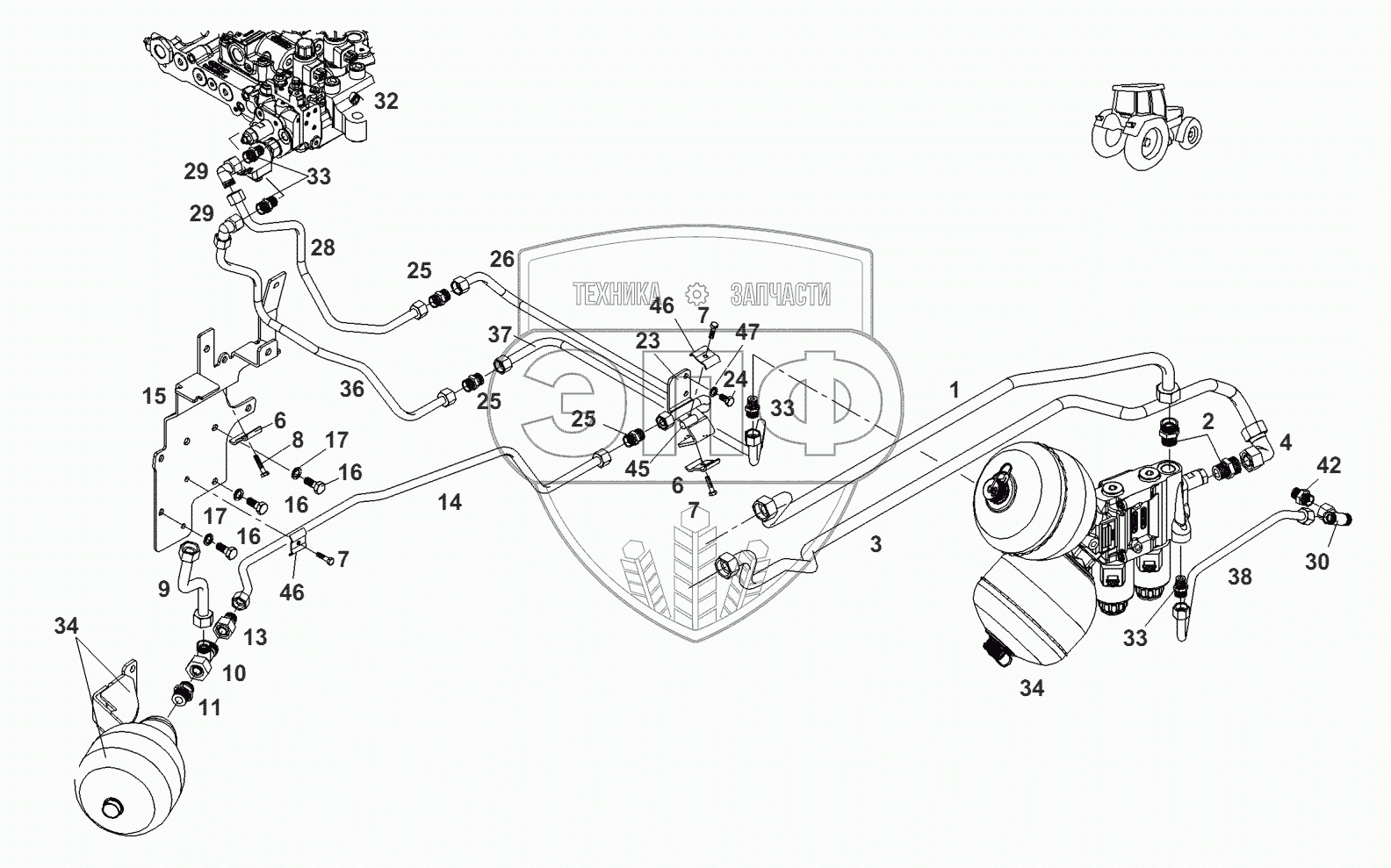 Каталог запасных частей к технике: AGCO Fendt-936 часть2. Передний мост-трубки подвески моста