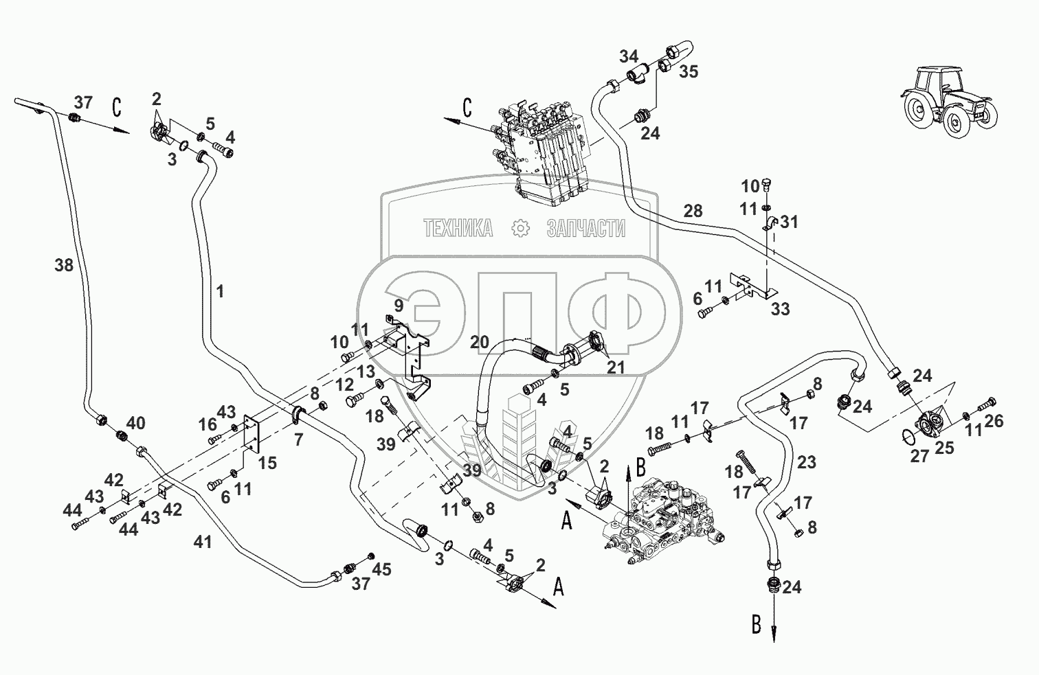 Каталог запасных частей к технике: AGCO Fendt-936 часть3. Гидравлическое соединение-трубопровод основного контура