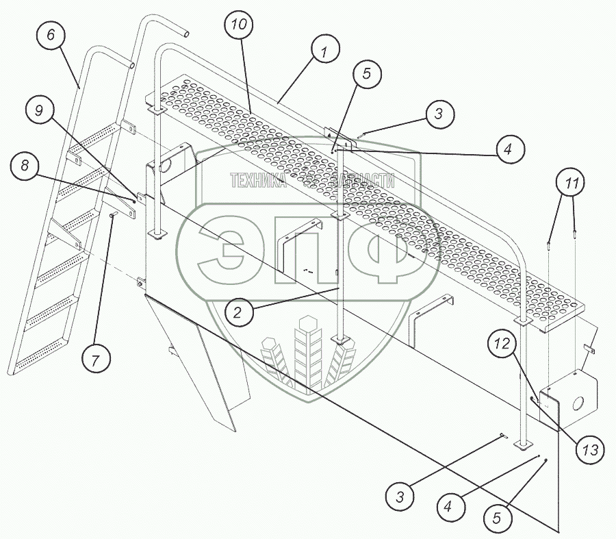 Каталог запасных частей к технике: Агро ТОМЬ ПК-10. Поручни, лестница, площадка