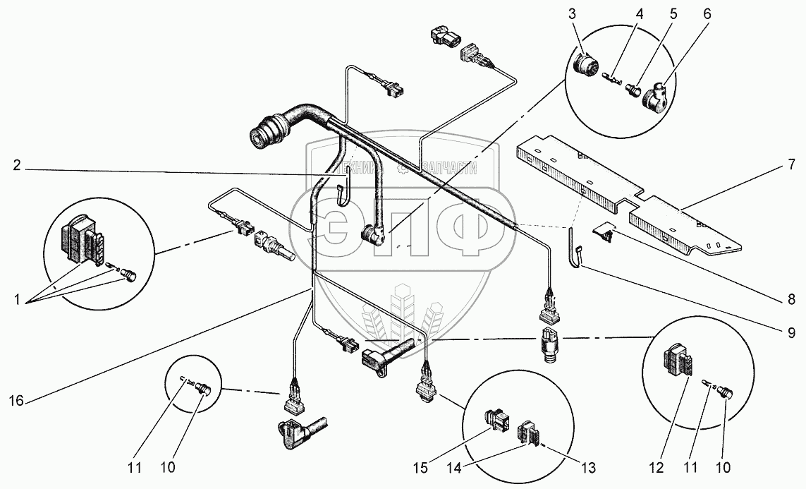Каталог запасных частей к технике: Агротехмаш АТМ-5280. Главный жгут двигателя