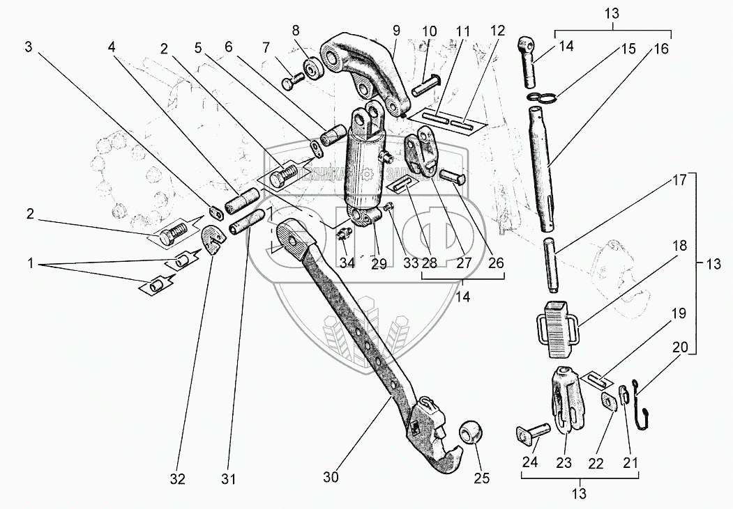 Каталог запасных частей к технике: Агротехмаш АТМ-5280. Устройство навесное заднее