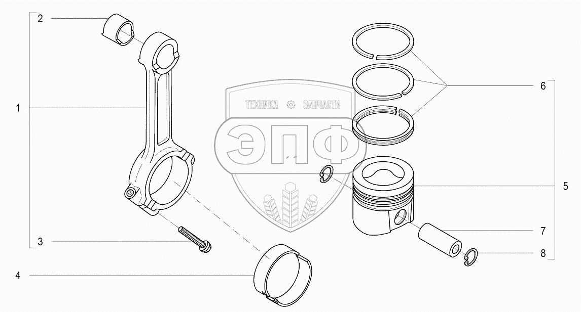 Каталог запасных частей к технике: Агротехмаш АТМ-7360. A106 Шатун и поршень