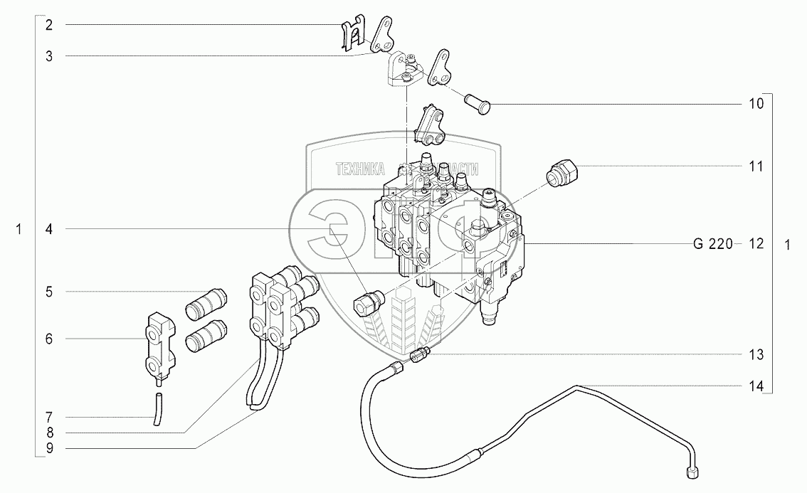 Каталог запасных частей к технике: Агротехмаш АТМ-7360. G219 Блок гидрораспределителей механический