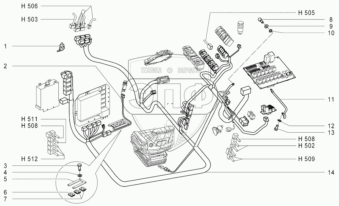 | 14 | 10011725 | Жгут проводов боковых панелей | Нет на складе |