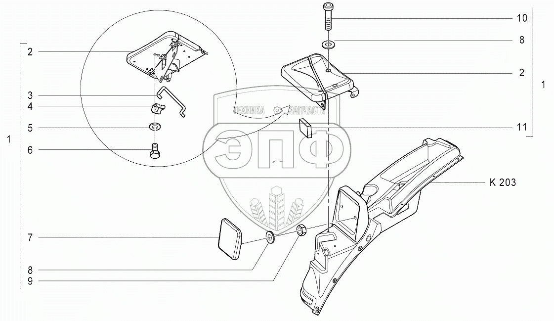 Каталог запасных частей к технике: Агротехмаш АТМ-7360. K102 Сиденье пассажира