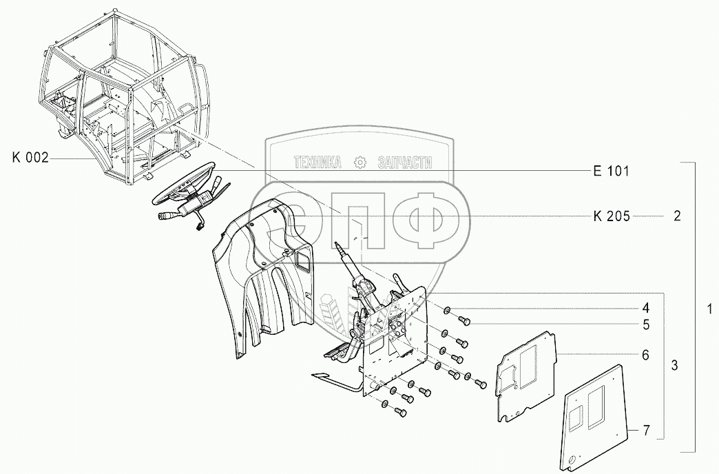 Каталог запасных частей к технике: Агротехмаш АТМ-7360. K103 Установка механизмов управления