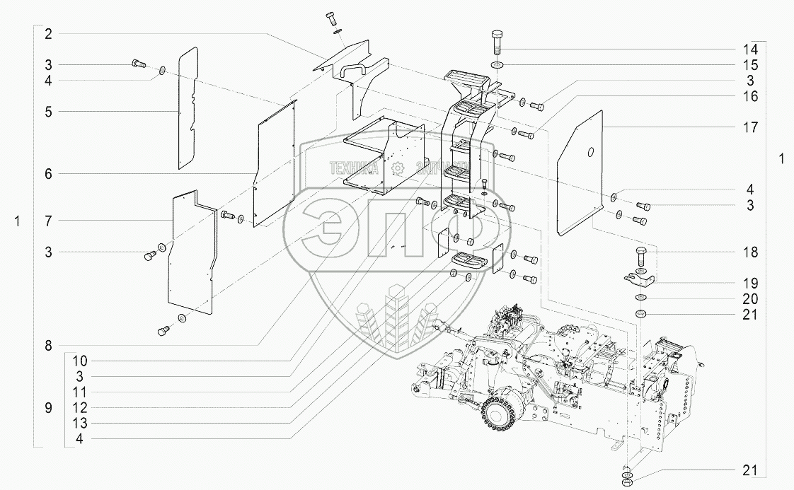 Каталог запасных частей к технике: Агротехмаш АТМ-7360. K405 Установка ящика АКБ