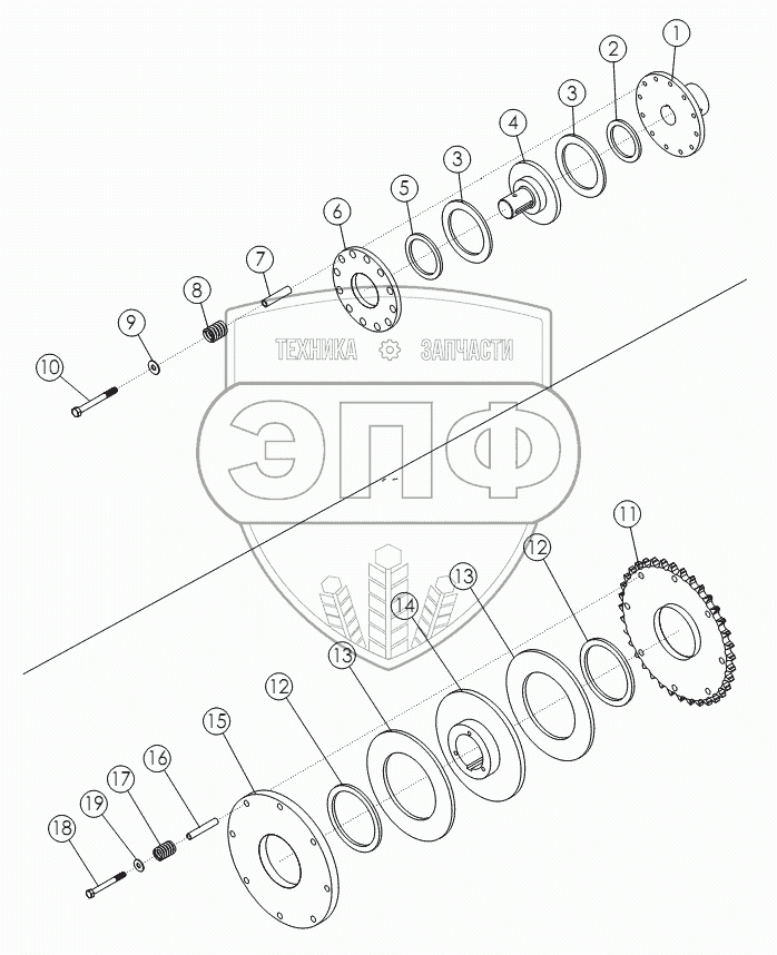 Каталог запасных частей к технике: Amity-2007 WIC 6 row. Предохранительная фрикционная муфта