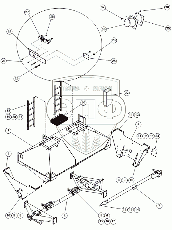 Каталог запасных частей к технике: Amity-2800 (3350). ASSY-TANK/RUNNING GEAR
