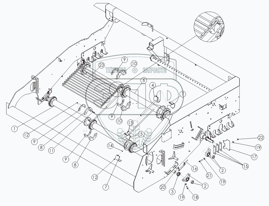 Каталог запасных частей к технике: Amity Wic Harvester 12 row 22s. APRON SHAFT