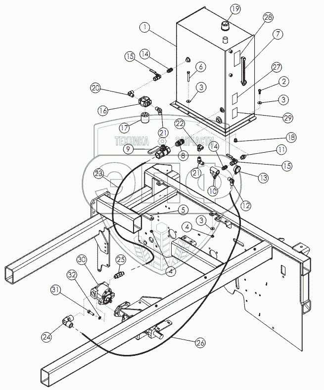Каталог запасных частей к технике: Amity Wic Harvester 12 row 22s. HYDRAULIC TANK