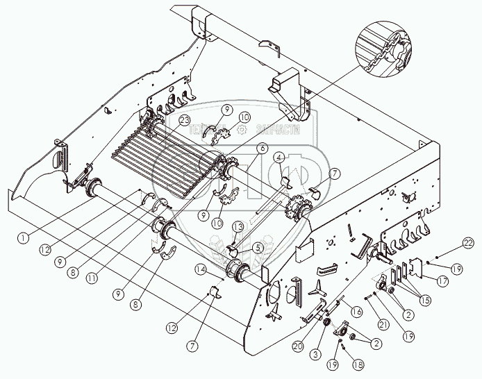 Каталог запасных частей к технике: Amity Wic Harvester 12 row 24s. APRON SHAFT 12R24