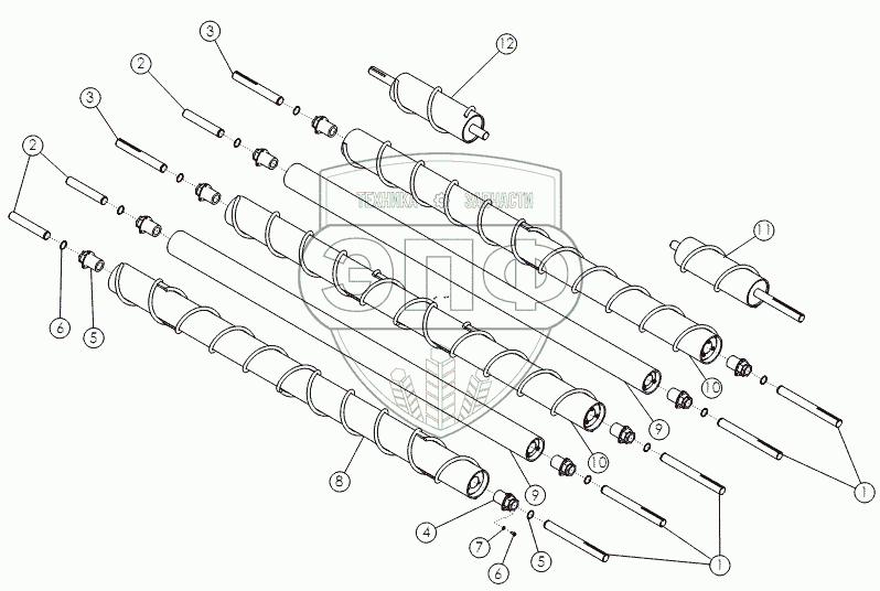 Каталог запасных частей к технике: Amity Wic Harvester 12 row 24s. REAR CLEANING ROLLS