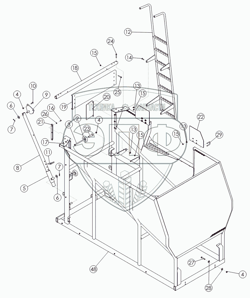 Каталог запасных частей к технике: Amity Wic Harvester 6 row 22s. Накопительный бункер