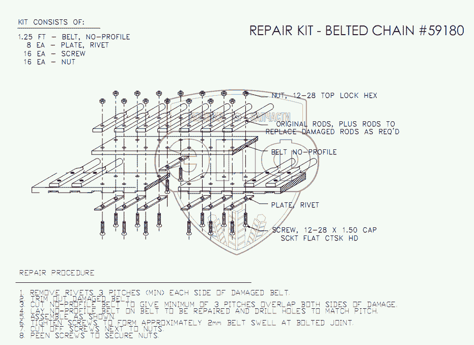 Каталог запасных частей к технике: Amity Wic Harvester 6 row 22s. Ремкоплект ременной цепи