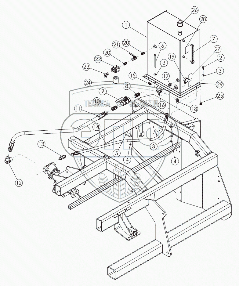 Каталог запасных частей к технике: Amity Wic Harvester 6 row 24s. HYDRAULIC TANK