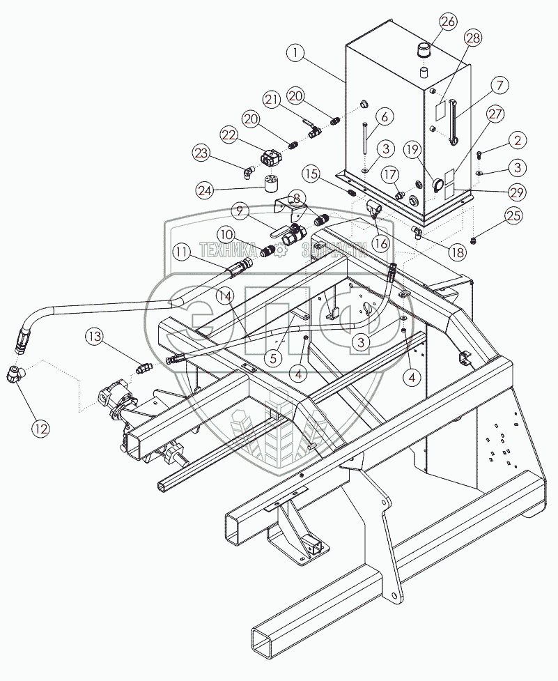 Каталог запасных частей к технике: Amity Wic Harvester 6 row 30w. HYDRAULIC TANK