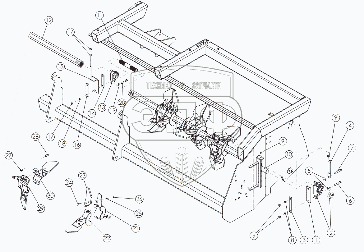 Каталог запасных частей к технике: Amity Wic Harvester 6 row 30w. PADDLE SHAFT