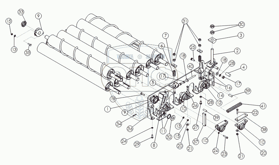 Каталог запасных частей к технике: Amity Wic Harvester 8 row 22s. База очистных валов