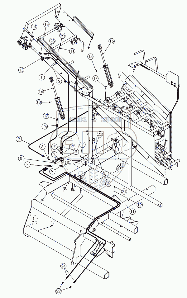 Каталог запасных частей к технике: Amity Wic Harvester 8 row 22s. Гидравлика накопительного бункера