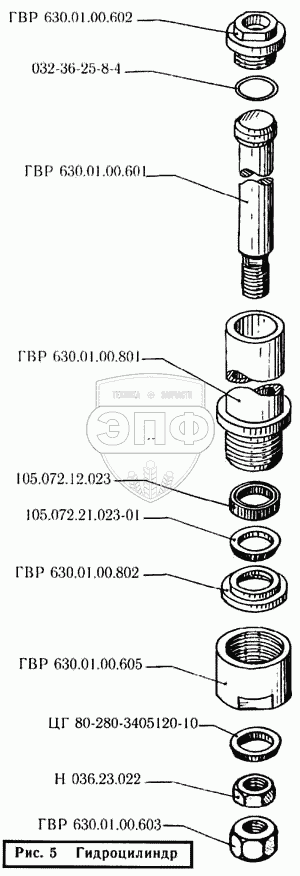 Каталог запасных частей к технике: Бобруйскагромаш ГВР-630. Гидроцилиндр