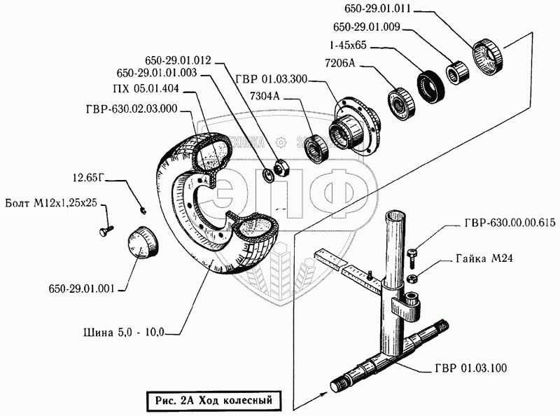 Каталог запасных частей к технике: Бобруйскагромаш ГВР-630. Пара колесная